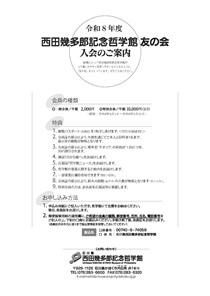 | 内容・期間 | 通年(4月1日~翌3月31日) ・西田幾多郎記念哲学館友の会会員の鈴木大拙館無料入館 ・鈴木大拙館賛助会員の西田幾多郎記念哲学館無料入館 5月19日(西田幾多郎の誕生日) ~11月11日(鈴木大拙の誕生日) ・入館券半券でもう一方の館に無料で入館可能 (注)半券1枚につき1回限り |